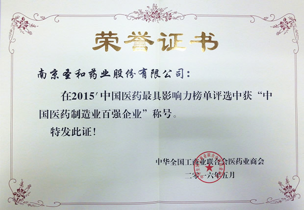 2015年度中國(guó)醫(yī)藥制造業(yè)百?gòu)?qiáng)企業(yè)
