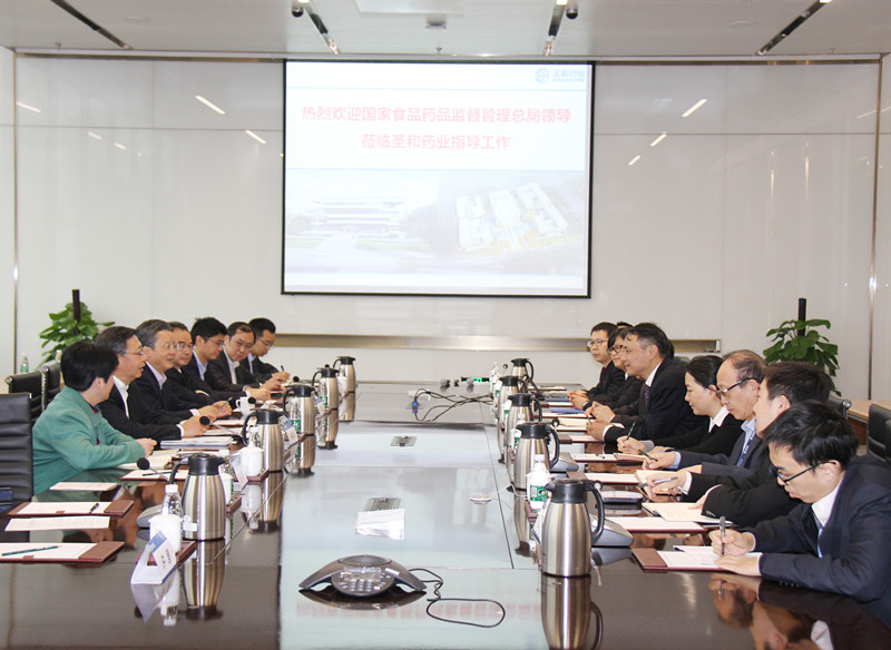 ??孫咸澤副局長首先來到圣和藥業(yè)展陳館,聽取了圣和藥業(yè)成長發(fā)展歷程、藥品研發(fā)成果、質(zhì)量安全體系建立以及未來戰(zhàn)略規(guī)劃的介紹。隨后,王勇董事長引領(lǐng)孫咸澤副局長一行參觀了研發(fā)中心研發(fā)樓及實驗室內(nèi)部區(qū)域。參觀過后,一行人在總部一樓會議室進(jìn)行了座談,會上,王勇董事長代表圣和藥業(yè)對孫咸澤副局長一行的來訪表示熱忱歡迎,并用PPT向各位領(lǐng)導(dǎo)匯報了圣和近年來的發(fā)展情況。孫咸澤副局長在聽取匯報后,首先向大家宣貫了國家總局近期在藥品注冊審評審批、藥品質(zhì)量安全、仿制藥一致性評價等方面的工作舉措和要求,并對我司在發(fā)展過程中需要的相關(guān)政策支持進(jìn)行了調(diào)研。最后,孫局長對圣和在藥品創(chuàng)新研發(fā)、質(zhì)量安全方面的成績給予了充分肯定,他勉勵圣和藥業(yè)繼續(xù)努力,成為醫(yī)藥行業(yè)中的一流品牌企業(yè)。??
