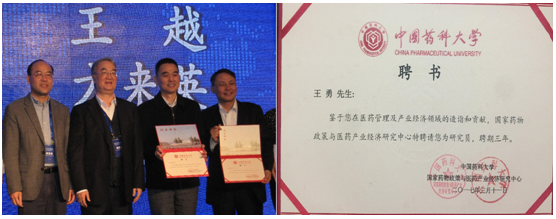 南京圣和藥業(yè)股份有限公司董事長王勇博士再次受聘為國家藥物政策與醫(yī)藥產業(yè)經濟研究中心(NDPE)研究員,桑國衛(wèi)院士和來茂德校長親自為他頒發(fā)聘書并合影留念。