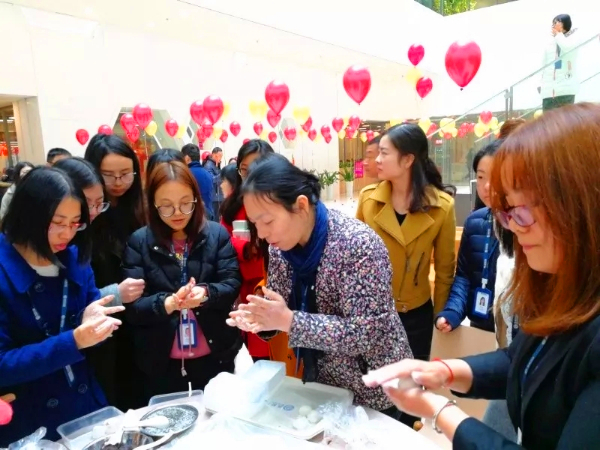活動現(xiàn)場,喜慶中國紅與奢華玫瑰金氣球搖曳呼應(yīng),同事們在午餐時間仿若置身夢幻海洋,沉浸在濃濃的節(jié)日氛圍里;猜完燈迷現(xiàn)場包元宵,短短的時間里,歡聲笑語間,同事們把團(tuán)圓、吉祥、健康的祝福都裹進(jìn)心里。