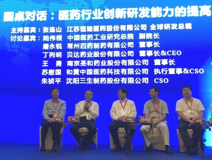 在8月5日上午的中國醫(yī)藥創(chuàng)智研發(fā)大會上,王勇董事長參加了關于“醫(yī)藥行業(yè)創(chuàng)新研發(fā)能力提升”的圓桌對話討論,與恒瑞醫(yī)藥、貝達藥業(yè)等相關同行共同分享與探討新藥研發(fā)方面經驗和面臨的挑戰(zhàn)。