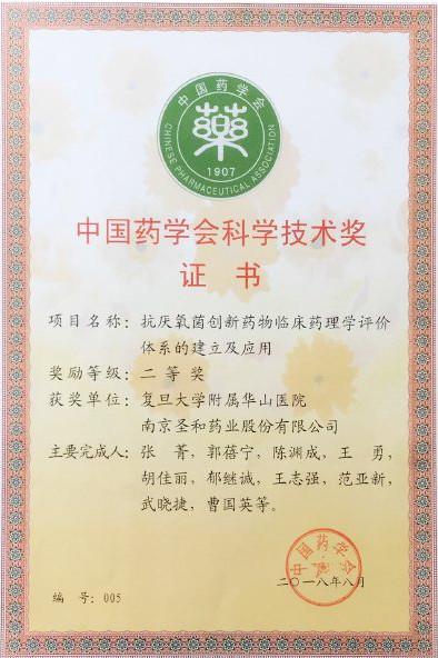 9 月 18 日上午,為鼓勵(lì)對(duì)藥學(xué)技術(shù)發(fā)展的貢獻(xiàn),大會(huì)頒發(fā)了第十三屆中國(guó)藥學(xué)會(huì)科學(xué)技術(shù)獎(jiǎng)等獎(jiǎng)項(xiàng),我司與復(fù)旦大學(xué)附屬華山醫(yī)院張菁教授團(tuán)隊(duì)合作的“抗厭氧菌創(chuàng)新藥物臨床藥理學(xué)評(píng)價(jià)體系的建立及應(yīng)用”獲得中國(guó)藥學(xué)會(huì)科學(xué)技術(shù)獎(jiǎng)二等獎(jiǎng)。
