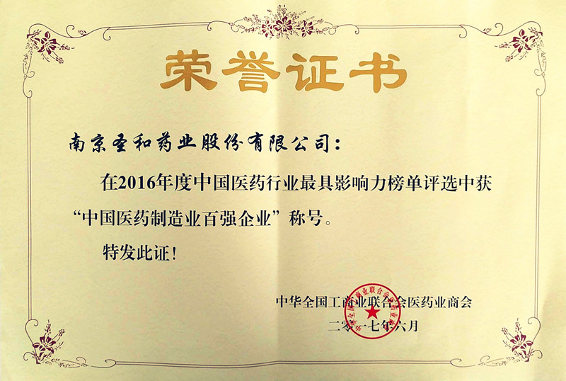 2016年度中國(guó)醫(yī)藥制造業(yè)百強(qiáng)企業(yè)