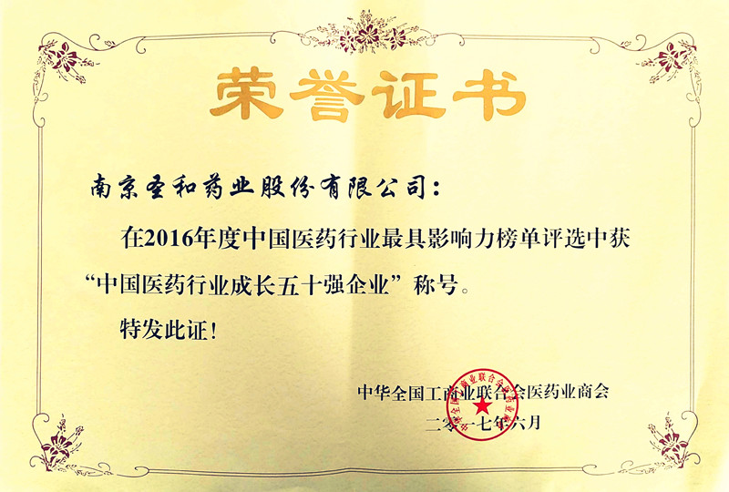 2016年度中國醫(yī)藥行業(yè)成長五十強企業(yè)