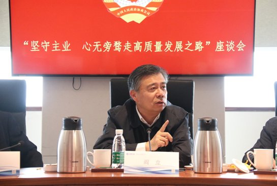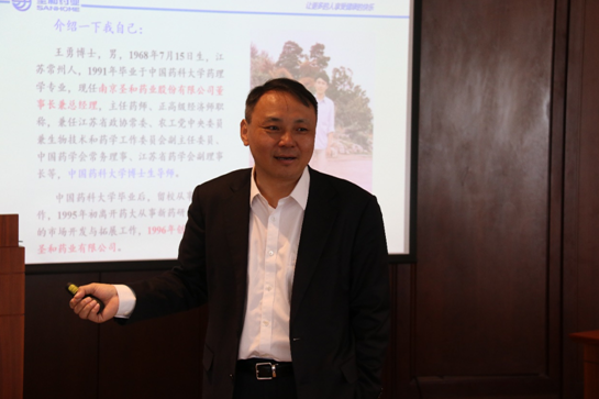 隨后,省工商聯(lián)黨組書記顧萬峰主持了以“堅守主業(yè),心無旁騖走高質(zhì)量發(fā)展之路”為主題的交流座談會。會上,王勇董事長首先為各位領(lǐng)導(dǎo)介紹了圣和的發(fā)展歷程,用圣和鮮活的成長故事,生動講述了在改革開放以來黨和政府營造的良好營商環(huán)境下,圣和是如何通過堅守主業(yè),專心做技術(shù)、一心做好藥,不斷苦練內(nèi)功、快速提升自身實力的。黨的十九大以來,民營經(jīng)濟營商環(huán)境持續(xù)改善,王勇董事長表示,面對民營經(jīng)濟將進一步大發(fā)展大繁榮的歷史性機遇,圣和將繼續(xù)專注專一,練好內(nèi)功,心無旁騖謀發(fā)展,為江蘇民營經(jīng)濟高質(zhì)量發(fā)展增光添彩。