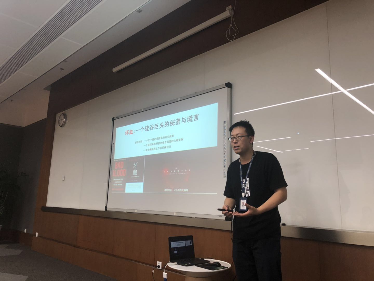 當(dāng)天下班后18:00,駐寧協(xié)會(huì)會(huì)員和部分讀書(shū)觀影愛(ài)好者齊聚麒麟總部1號(hào)樓104會(huì)議室,集中分享由協(xié)會(huì)裴江鴻會(huì)長(zhǎng)推薦的一本關(guān)于商業(yè)欺詐的美國(guó)紀(jì)實(shí)題材暢銷書(shū)——《壞血》,以及一部與此關(guān)聯(lián)的紀(jì)錄片《滴血成金:硅谷血檢大騙局》。
