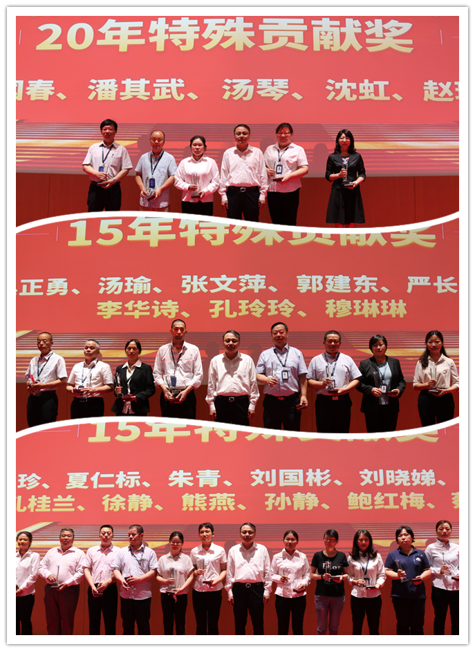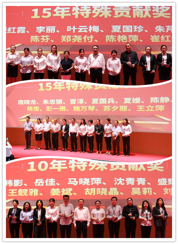 本次表彰分為優(yōu)秀團隊表彰、先進員工表彰和特殊貢獻表彰。西南代表處及華東代表處獲杰出團隊貢獻獎;先進員工表彰,分別設(shè)立“鐵血戰(zhàn)士”、“百戰(zhàn)精英”、“榮耀軍魂”、“璀璨之星”四個獎項,肖靜、張巍巍等共187人分獲獎項,其中鐵血戰(zhàn)士130人;百戰(zhàn)精英34人;榮耀軍魂5人;璀璨之星18人。特殊貢獻獎表彰,根據(jù)司齡,分為10年、15年、20年特殊貢獻獎三個部分,本次授予賈勇、張翠華等147人特殊貢獻榮譽稱號。