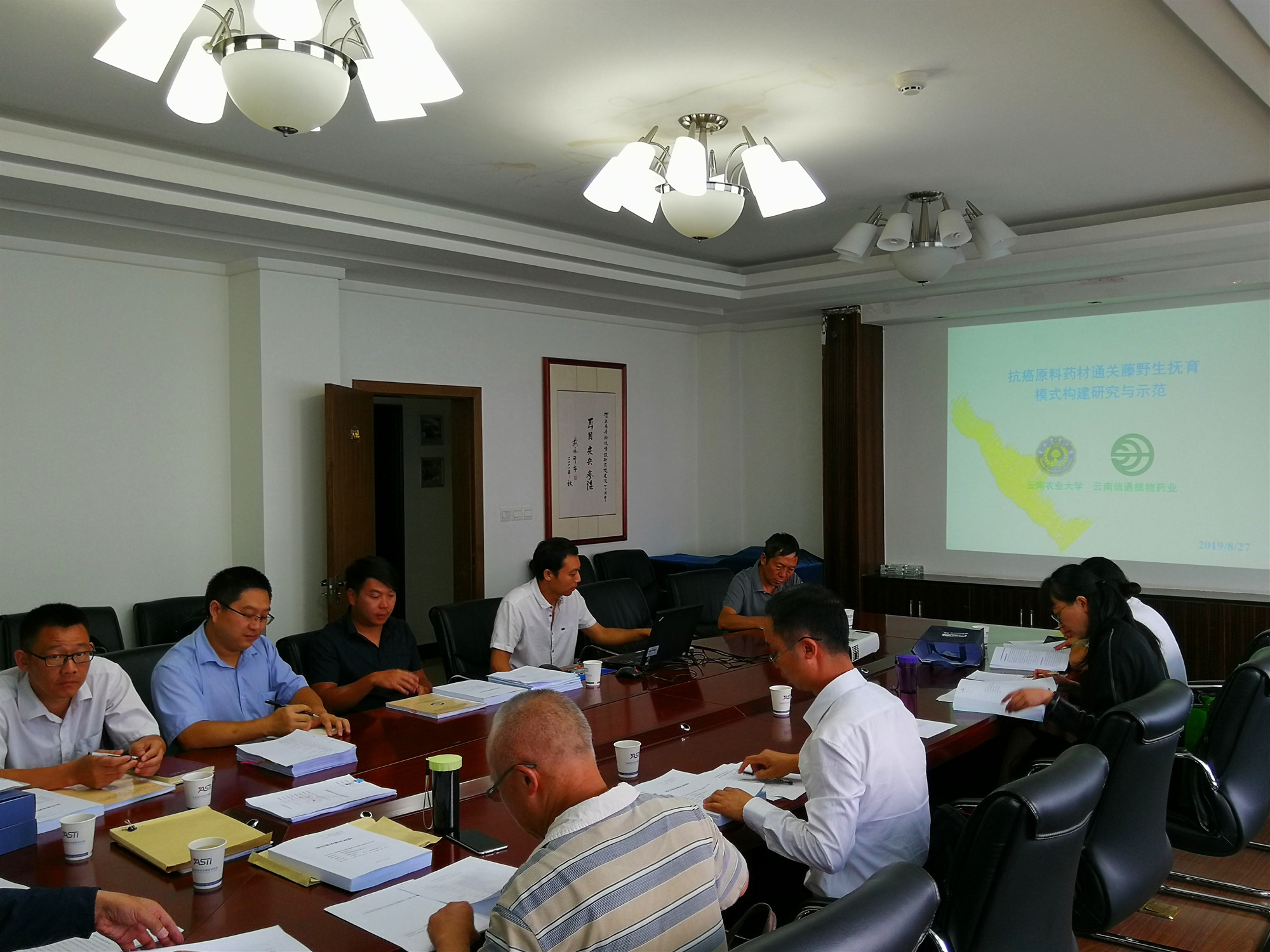 2019年8月27日,由云南省科技廳組織,云南信通植物藥業(yè)有限公司與云南農(nóng)業(yè)大學(xué)合作申報(bào)的云南省科技廳科技惠民《抗癌原料藥材通關(guān)藤野生撫育模式構(gòu)建研究與示范》項(xiàng)目結(jié)題驗(yàn)收專家評(píng)審與答辯會(huì)在昆明市云南科學(xué)技術(shù)情報(bào)研究院舉行,省廳組織的技術(shù)和財(cái)務(wù)方面專家5人、項(xiàng)目總負(fù)責(zé)人云南農(nóng)業(yè)大學(xué)龍光強(qiáng)教授、植物藥基地項(xiàng)目負(fù)責(zé)人王平理經(jīng)理等參加會(huì)議。
