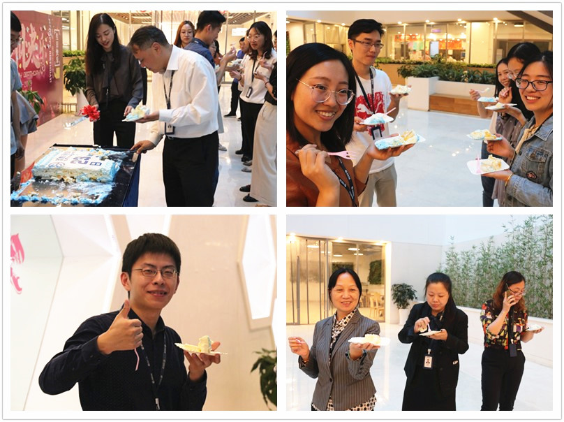 下午五時三十分許,麒麟總部員工自發(fā)來到中庭,伴隨著一首生日快樂,小伙伴們共同切開了生日蛋糕,打著比心的手勢,在一聲:“圣和,祝你生日快樂!”中分享甜蜜。