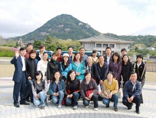 (優(yōu)秀員工和銷售能手們在韓國總統(tǒng)府青瓦臺前合影)