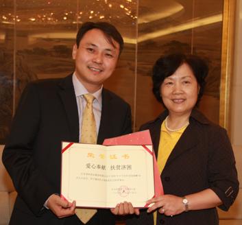 楊潔篪部長夫人、國外工作局參贊樂愛妹向王勇董事長頒發(fā)捐贈榮譽(yù)證書和感謝信