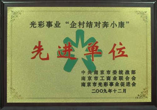 2009年12月18日下午,南京市委統(tǒng)戰(zhàn)部、市工商聯(lián)和市光彩事業(yè)促進會共同舉辦了“南京市光彩事業(yè)‘企村結(jié)對奔小康’活動先進單位”表彰大會,市領(lǐng)導錢繼紅等出席了會議。會議總結(jié)了三年來,我市光彩事業(yè)“企村結(jié)對奔小康”取得的成績,部署了下一階段工作,對三年來一直大力弘揚光彩事業(yè)精神,積極承擔社會責任并做出突出貢獻的非公有制經(jīng)濟組織進行表彰。會上,我公司被授予“南京市光彩事業(yè)‘企村結(jié)對奔小康’活動先進單位”稱號。