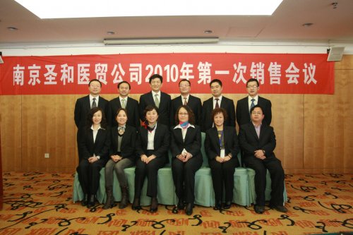 1月27日至1月30日,南京圣和醫(yī)貿(mào)公司2010年第一次銷售會議在南京國信大酒店隆重舉行。公司高層、各部門及各事業(yè)部主要負責人參加了此次會議。圣和集團董事長王勇先生縱觀全局發(fā)表了重要講話,醫(yī)貿(mào)公司執(zhí)行總經(jīng)理沈蓮君先生對2010年銷售工作做了部署,同時公司與各事業(yè)部、各地區(qū)負責人舉行了莊重的目標責任書簽訂儀式。