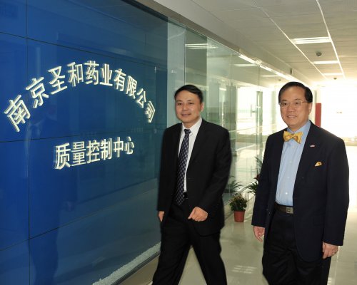 王勇董事長對曾蔭權(quán)行政長官蒞臨圣和表示歡迎,并通過圣和集團(tuán)宣傳短片向來訪貴賓介紹了我公司的發(fā)展概況,曾蔭權(quán)特別了解了我公司列入國家重大新藥創(chuàng)制科技重大專項的國家一類新藥左奧硝唑的市場開拓情況,并表示,香港正致力發(fā)展醫(yī)療產(chǎn)業(yè),并已成立檢測和認(rèn)證局,相信將來與內(nèi)地制藥業(yè)有更廣闊的合作空間。王勇董事長也表示對香港市場充滿期待,希望能有機(jī)會與港方進(jìn)行合作。