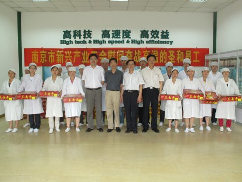 慰問(wèn)現(xiàn)場(chǎng),新興產(chǎn)業(yè)工會(huì)主任王軍說(shuō):“南京圣和藥業(yè)是我市優(yōu)秀的民營(yíng)企業(yè),也是我市制藥行業(yè)中科技領(lǐng)先的企業(yè),企業(yè)工會(huì)工作在南京市民營(yíng)企業(yè)中也是做得非常好的。今天,我來(lái)到這里,天氣炎熱,看到同志們還堅(jiān)持奮戰(zhàn)在生產(chǎn)一線,我代表市新興產(chǎn)業(yè)工會(huì)對(duì)大家辛苦工作表示慰問(wèn)!希望大家在保證工作質(zhì)量的同時(shí)特別注意安全,確保平安度夏!”隨后,新興產(chǎn)業(yè)工會(huì)領(lǐng)導(dǎo)給員工代表送上防暑降溫飲品。