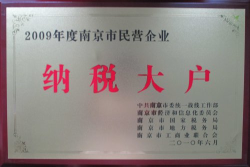 日前,由中共南京市委統(tǒng)戰(zhàn)部、南京市經(jīng)濟(jì)和信息化委員會(huì)、南京市人力資源和社會(huì)保障局、南京市國(guó)家稅務(wù)局、南京市地方稅務(wù)局、南京市工商業(yè)聯(lián)合會(huì)聯(lián)合評(píng)出了“2009年度南京市民營(yíng)企業(yè)納稅大戶”,我公司在此次評(píng)比中光榮上榜。