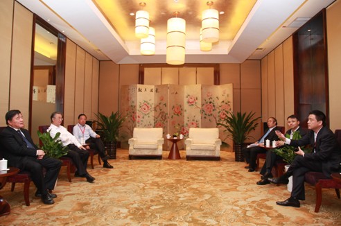 桑國衛(wèi)副委員長、陳竺部長與王勇董事長(右二)等參會(huì)代表親切交談