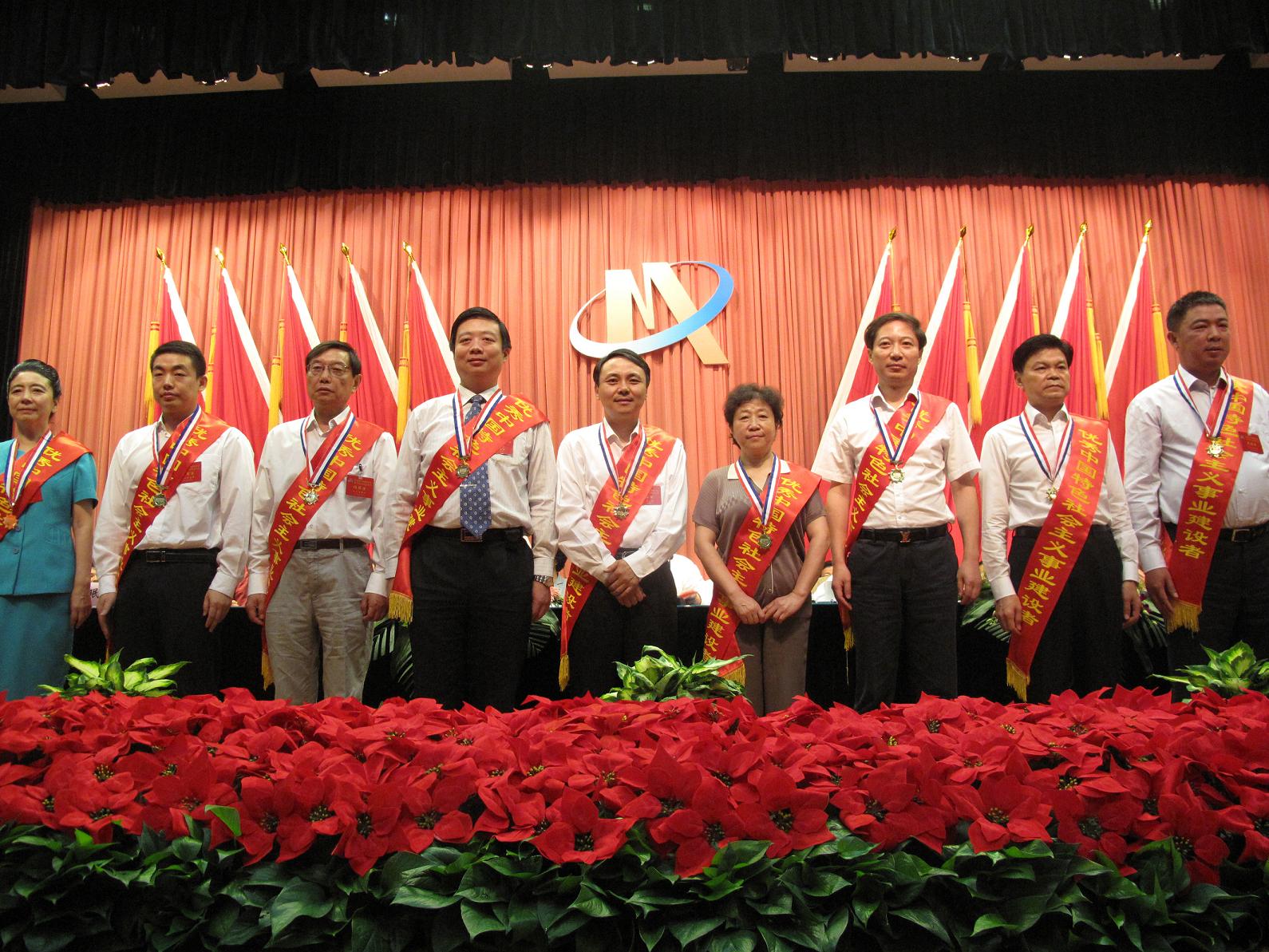 王勇董事長(zhǎng)(中)登臺(tái)接受表彰