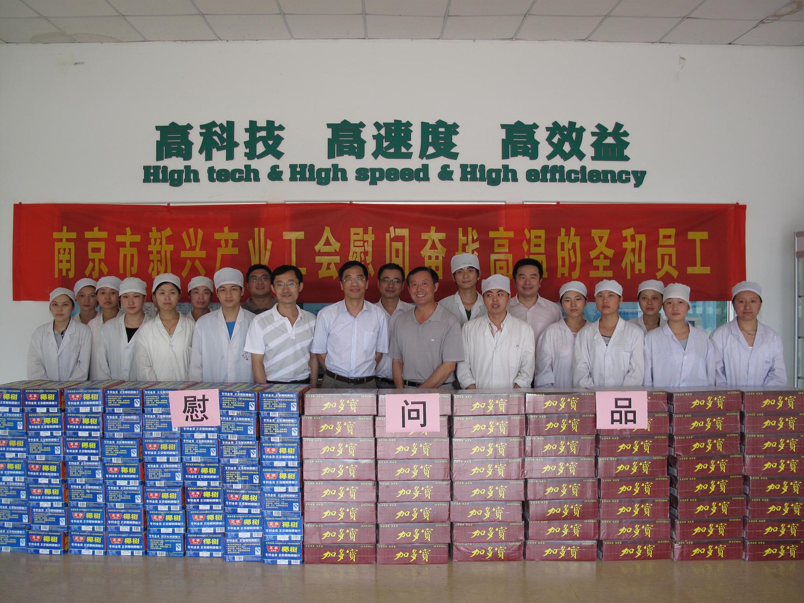 本網(wǎng)訊 7月24日,夏日炎炎,南京市新興產(chǎn)業(yè)工會郎岳主席一行三人在集團(tuán)工會主席戚良猛同志的陪同下,冒著酷暑來到我司新港生產(chǎn)基地,慰問奮戰(zhàn)在生產(chǎn)一線的廣大職工,為一線職工送上了防暑降溫慰問品,給職工們帶來了清涼和關(guān)懷。
