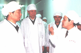 二○○三年“五一”節(jié)當(dāng)天,省委書記李源潮在南京市委書記羅志軍的陪同下,上午十點(diǎn)三十分來到我公司新港生產(chǎn)基地了解生產(chǎn)抗”非典“藥物生產(chǎn)情況,看望并慰問奮戰(zhàn)在一線的員工,代表省委、省政府對本公司員工在勞動者的節(jié)日、非常時(shí)期堅(jiān)守崗位,加班加點(diǎn),保證防治非典藥物的生產(chǎn)供應(yīng)表示感謝,并向全省工人階級和所有勞動者致以節(jié)日的問候。