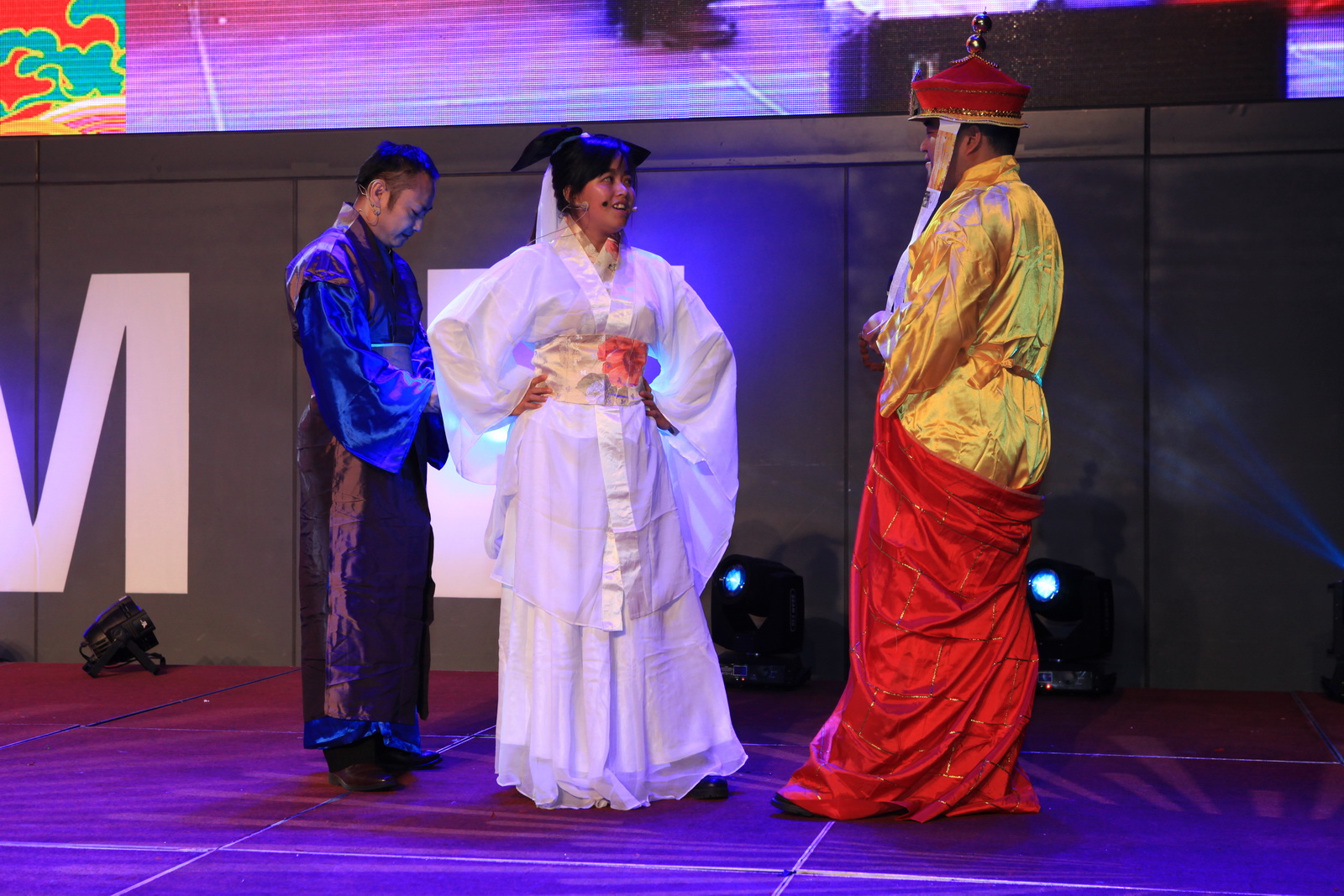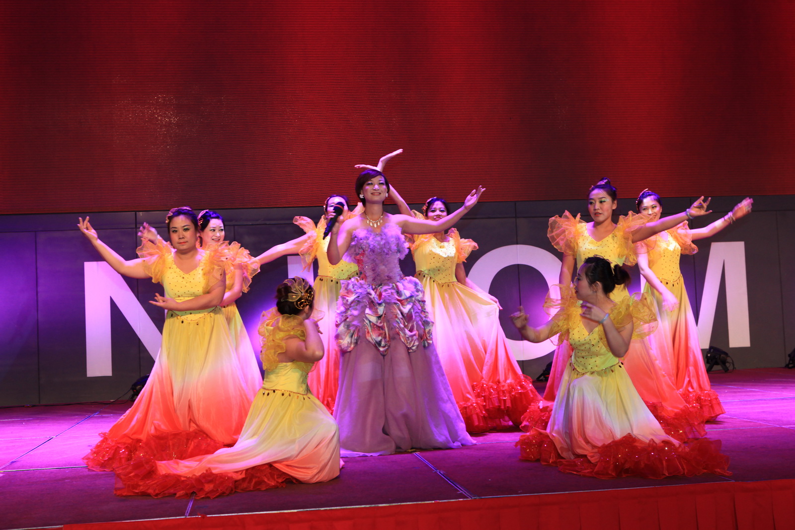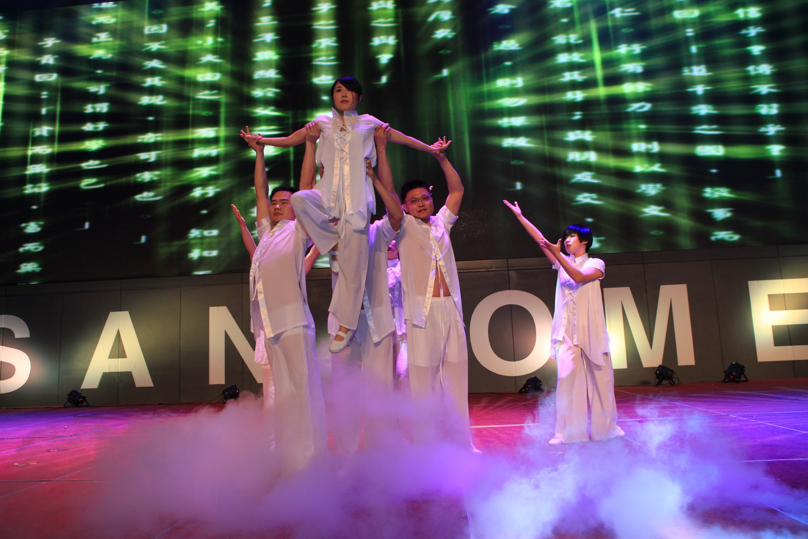 舞蹈《好運(yùn)來(lái)》拉開了演出的序幕,視頻短片《光耀未來(lái)》寓意著,“榮光耀,千里之行始今朝,展未來(lái),萬(wàn)里揚(yáng)帆再啟航”。由吉遼大區(qū)孫瑤等帶來(lái)的歌伴舞《相信》和來(lái)自南京德云社的兩位著名相聲演員,給大家?guī)?lái)了不一樣的聽覺享受。江蘇大區(qū)的童沅等帶來(lái)的舞蹈串燒,展示了圣和員工的活力和朝氣。研發(fā)中心的視頻互動(dòng)《爸爸去哪兒了》,喚起了大家無(wú)限的親情感受。江蘇省歌舞團(tuán)演員奉上的民歌《越來(lái)越好》和《在希望的田野上》,增添了紅紅火火的氣氛。黑龍江大區(qū)的張巍巍、郭強(qiáng)兩人合作的小品《吃面》,給大家?guī)?lái)了不少樂子。制劑分廠三車間任詠秋的歌伴舞《望鄉(xiāng)》,唱出了無(wú)盡的鄉(xiāng)情。奇妙的《水晶芭蕾》,給大家?guī)?lái)了不一樣的觀賞視覺。云貴大區(qū)的小品《新白蛇傳》中插播的廣告詞,讓圣和人記憶猶新。研發(fā)中心何承華帶來(lái)了歌曲《女人花》,盡顯柔情感染了全場(chǎng)。供應(yīng)鏈徐明秀、滿金萍帶來(lái)快板表演《供應(yīng)鏈之聲》,道出了供應(yīng)鏈的心聲。京劇樣板戲串燒、制劑分廠一車間崔紅俊的獨(dú)唱《紛飛》,讓大家一飽耳福。上海大區(qū)譚秋艷等的現(xiàn)代舞《思韻》,毫不遜色專業(yè)型的舞蹈演員,輕盈的舞姿散發(fā)著時(shí)代的氣息。置業(yè)公司的小合唱《真心英雄》,掀起了本場(chǎng)晚會(huì)的高潮,王勇董事長(zhǎng)也被邀登臺(tái)同唱。北京大區(qū)的舞蹈《好日子》落下了整場(chǎng)晚會(huì)的帷幕,寓意著新的一年我們迎來(lái)2014,讓我們盛情邀約好日子的到來(lái)。