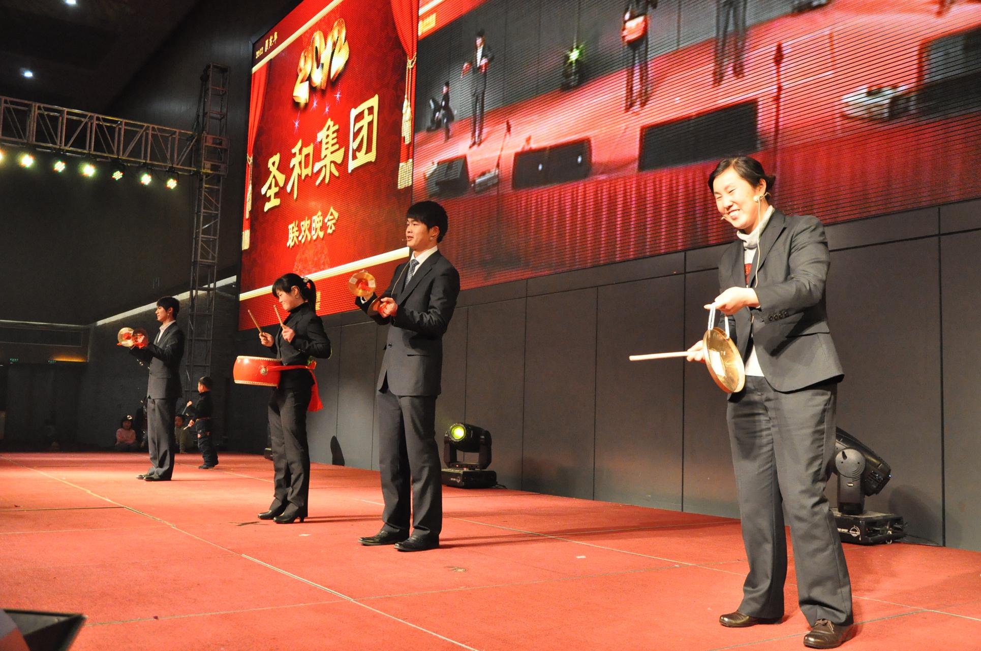 唯美的沙畫拉開了演出的序幕,為所有到場人員再次展示了圣和集團一路走來的歷程與輝煌成就,也展示了新的希望和新的征程。隨后,屬龍的員工代表上臺,每人一句吉言群龍大拜年;研究院員工的對唱《國家》,讓大家一飽耳福;鑼鼓叮咚敲起來,藥廠的四位員工帶來了《三句半》表演,喜迎佳節(jié);精彩的瑞士軍鼓演奏,給大家?guī)砹瞬灰粯拥挠^賞視覺;藥業(yè)公司溫歡歡帶來的獨唱《原來你也在這里》,讓每位圣和人享受緣分帶來的歡樂;現(xiàn)場的近景魔術(shù)在晚會過程中,掀起了一陣高潮,魔術(shù)的神奇讓大家驚奇連連;李緒斌的獨唱《青藏高原》,讓每一位的聽覺得到了洗禮;精彩的“墨舞”表演,把書法與舞蹈結(jié)合的淋漓盡致;置業(yè)公司馬路廣的獨唱《九百九十九朵玫瑰》、藥業(yè)公司崔紅俊的越劇《天上掉下個林妹妹》,讓我們感受到了現(xiàn)代與古典的聽覺美。全場暗燈后,熒光舞帶來的炫目視覺,讓每一位觀眾感覺到了藝術(shù)的獨特。常懷感恩之心的人是最幸福的,常懷感激之情的生活是最甜美的。圣和集團對于所有的圣和人,都持有一顆感恩的心,醫(yī)貿(mào)公司代表帶來手語合唱舞蹈表演《感恩的心》。最后,王勇董事長帶領(lǐng)演出人員合唱了一首《難忘今宵》,在悠揚的旋律和深情的歌聲中圓滿結(jié)束了整場晚會。