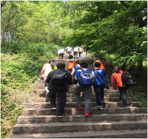 接著全員參與了勇攀高峰環(huán)節(jié),在大自然的懷抱中,輕松愉快的途經(jīng)狀元廣場、步行臺階,最終登上了老鷹山瞭望塔塔頂。